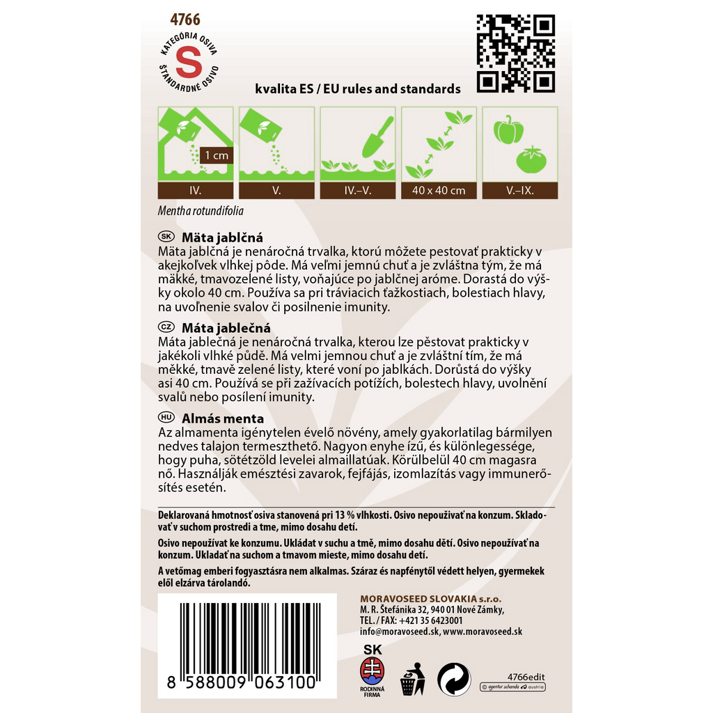 - Egenskaper: Mild smak, härlig doft av äpple, växt höjd ca 40 cm