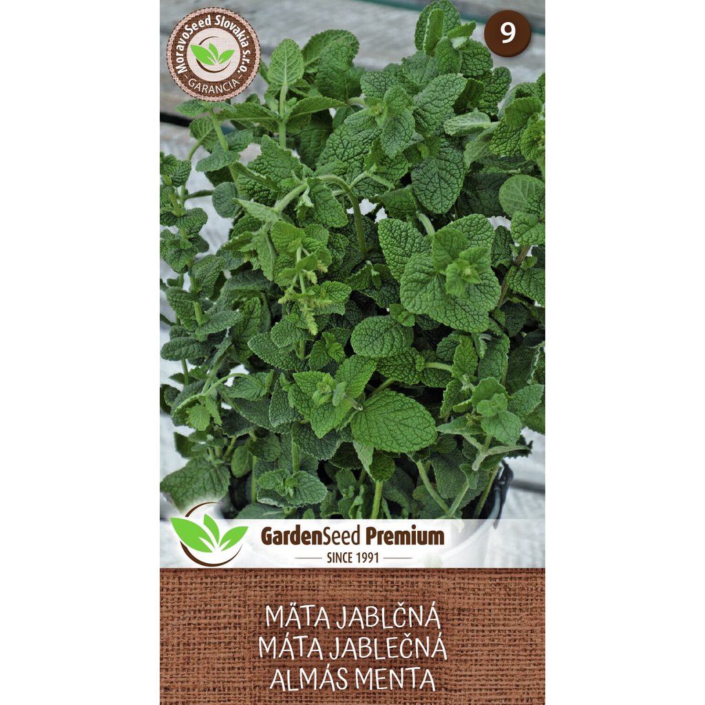 Äppelmynta (Mentha x rotundifolia) är en lättodlad kryddväxt som trivs i nästan alla typer av jordar. Växten blir cirka 40 cm hög och har mjuka, mörkgröna blad med en härlig doft av äpple. Den milda smaken gör den perfekt för te, efterrätter och matlagning, och den ger en fräsch smakupplevelse i olika rätter.