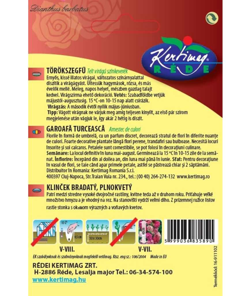 - Typ: Tvåårig prydnadsväxt (Dianthus barbatus)