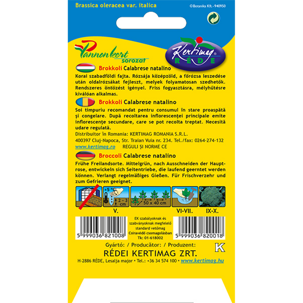 Broccoli Calabrese (Brassica oleracea var. italica) är en tidig sort som är idealisk för frilandsodling. Den ger medelgröna huvuden av hög kvalitet och efter att huvudskottet har skördats utvecklar plantan sidoskott för en kontinuerlig skörd. Broccoli Calabrese trivs med regelbunden bevattning och passar utmärkt för både färsk konsumtion och infrysning. En perfekt gröda för trädgårdsodlare som vill ha en hållbar och smakfull skörd.