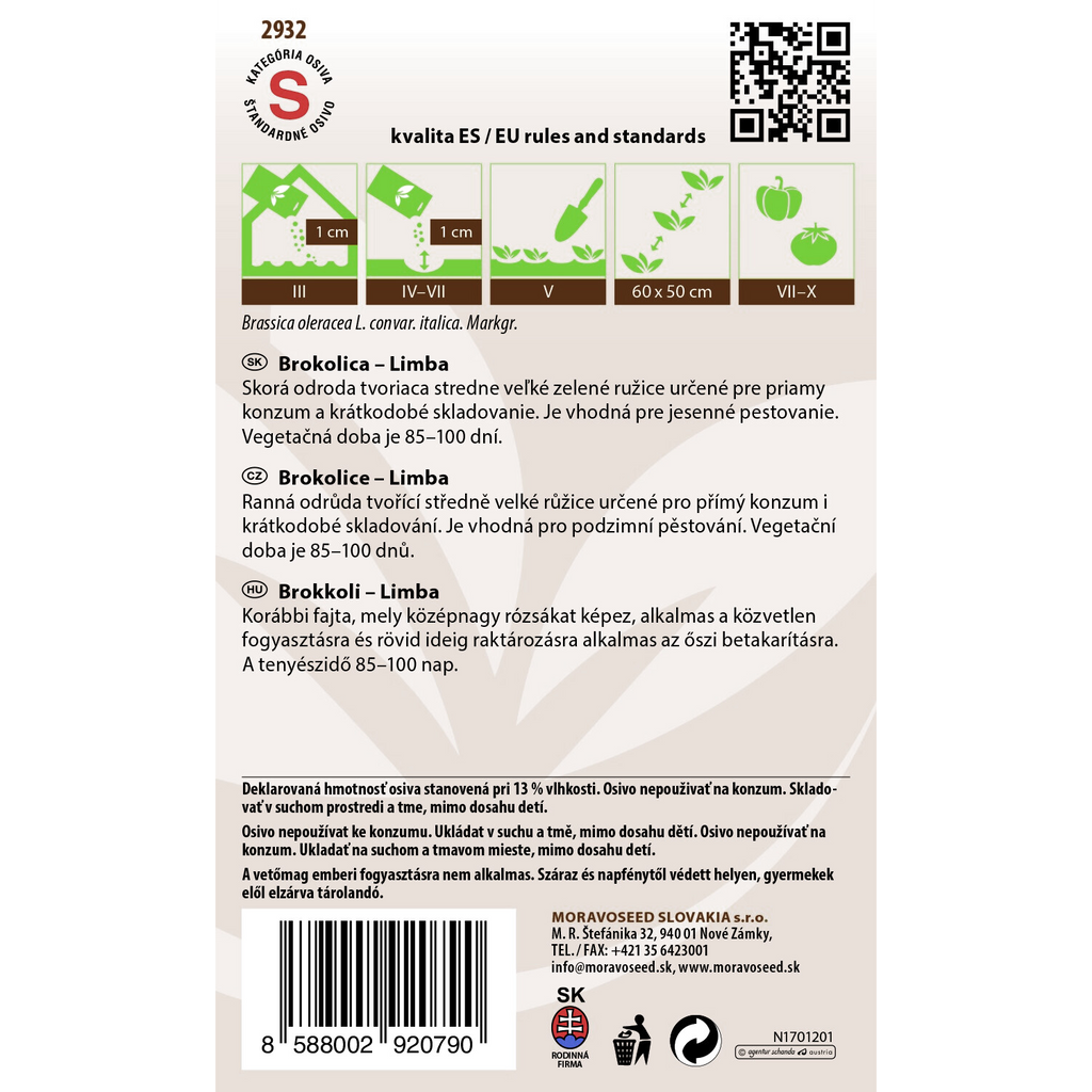 Broccoli Limba (Brassica oleracea var. italica) är en tidig sort som bildar medelstora huvuden, perfekt för färsk konsumtion och korttidslagring. Denna sort är idealisk för höstskörd med en växttid på 85–100 dagar, och passar både nybörjare och erfarna odlare.