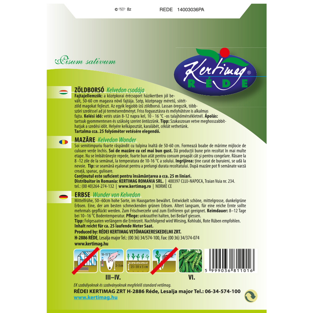 Brytsockerärt Kelvedon Wonder (Pisum sativum L.) är en medeltidig och pålitlig sort som växer till en höjd av 50–60 cm. Baljorna innehåller medelstora, mörkgröna ärtor med utsökt smak. Sorten åldras långsamt, vilket gör den idealisk för flera skördar under säsongen. Denna ärtsort är perfekt för färsk konsumtion eller frysning, och kan sås i omgångar för en längre skördeperiod. En utmärkt val för hobbyodlare som söker hög avkastning och enkel odling.
