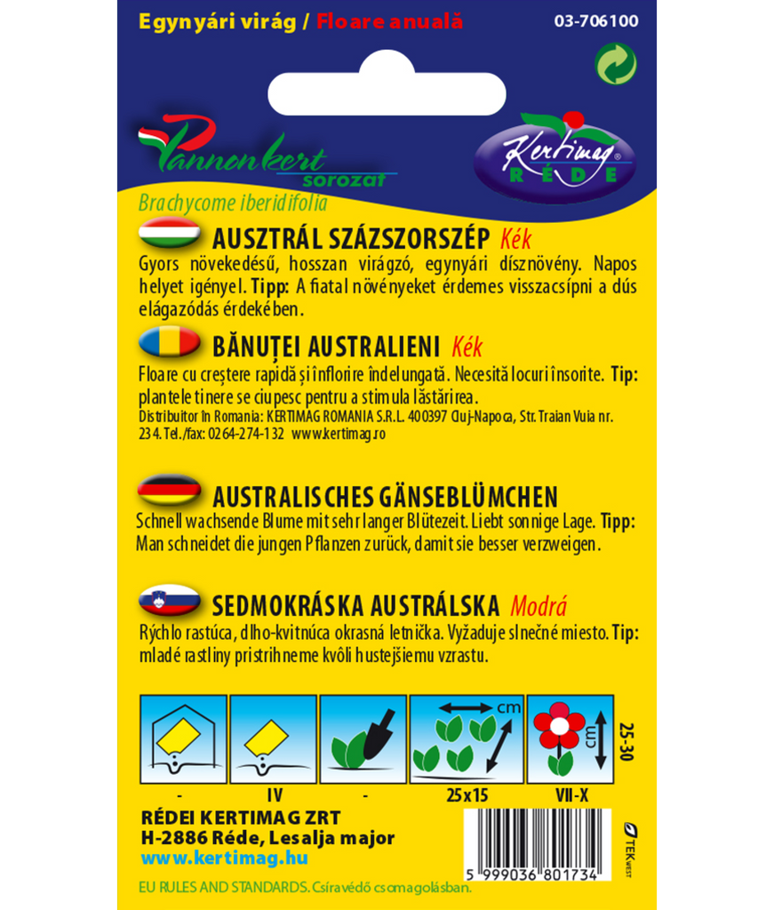 - Typ: Ettårig prydnadsväxt (Brachyscome iberidifolia)
