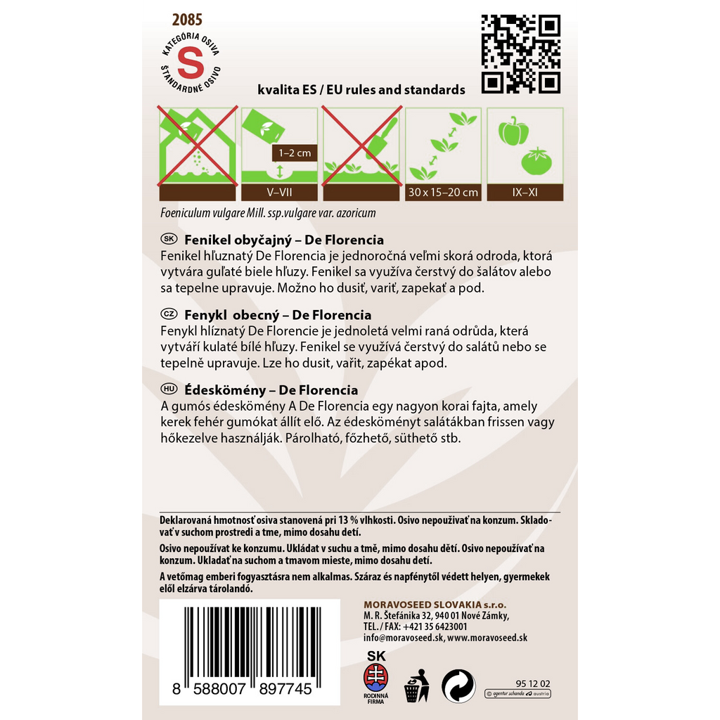 Fänkål De Florencia (Foeniculum vulgare Mill. ssp. vulgare var. azoricum) är en mycket tidig sort som utvecklar runda, vita knölar med mild och aromatisk smak. Perfekt att använda färsk i sallader eller tillagad genom ångning, kokning eller stekning. En mångsidig och läcker ingrediens för alla kök.
