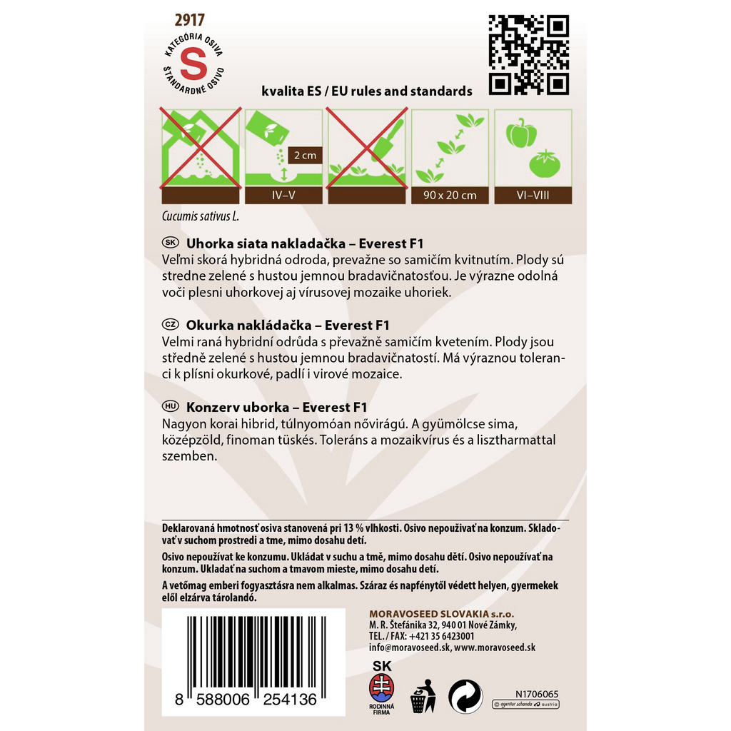 Gurka Everest F1 är en mycket tidig hybrid med hög andel honblommor, perfekt för dig som vill odla egna smakrika gurkor för inläggning. Sorten ger fina, släta och mellangröna gurkor med små fina taggar, vilket ger dem ett attraktivt utseende och utmärkt konsistens vid konservering.
