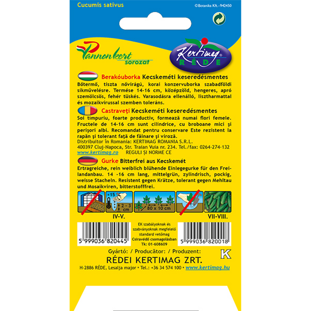 Gurka Kecskeméti är en tidig och robust inläggningsgurka som utvecklar enbart honblommor – vilket ger hög skörd och odlingssäkerhet. Denna sort är särskilt framtagen för frilandsodling och ger vackra, cylindriska frukter som är 14–16 cm långa, med medelgrön färg, små vårtor och vita taggar.