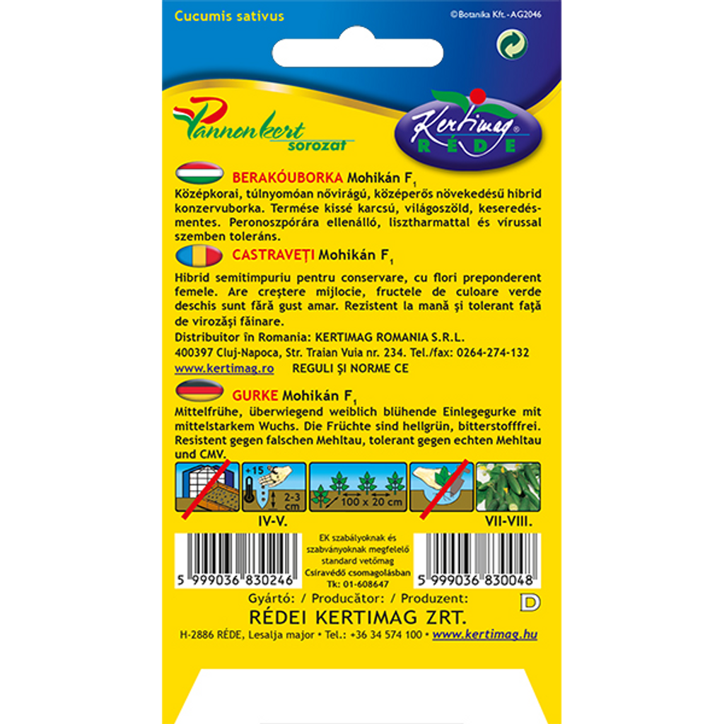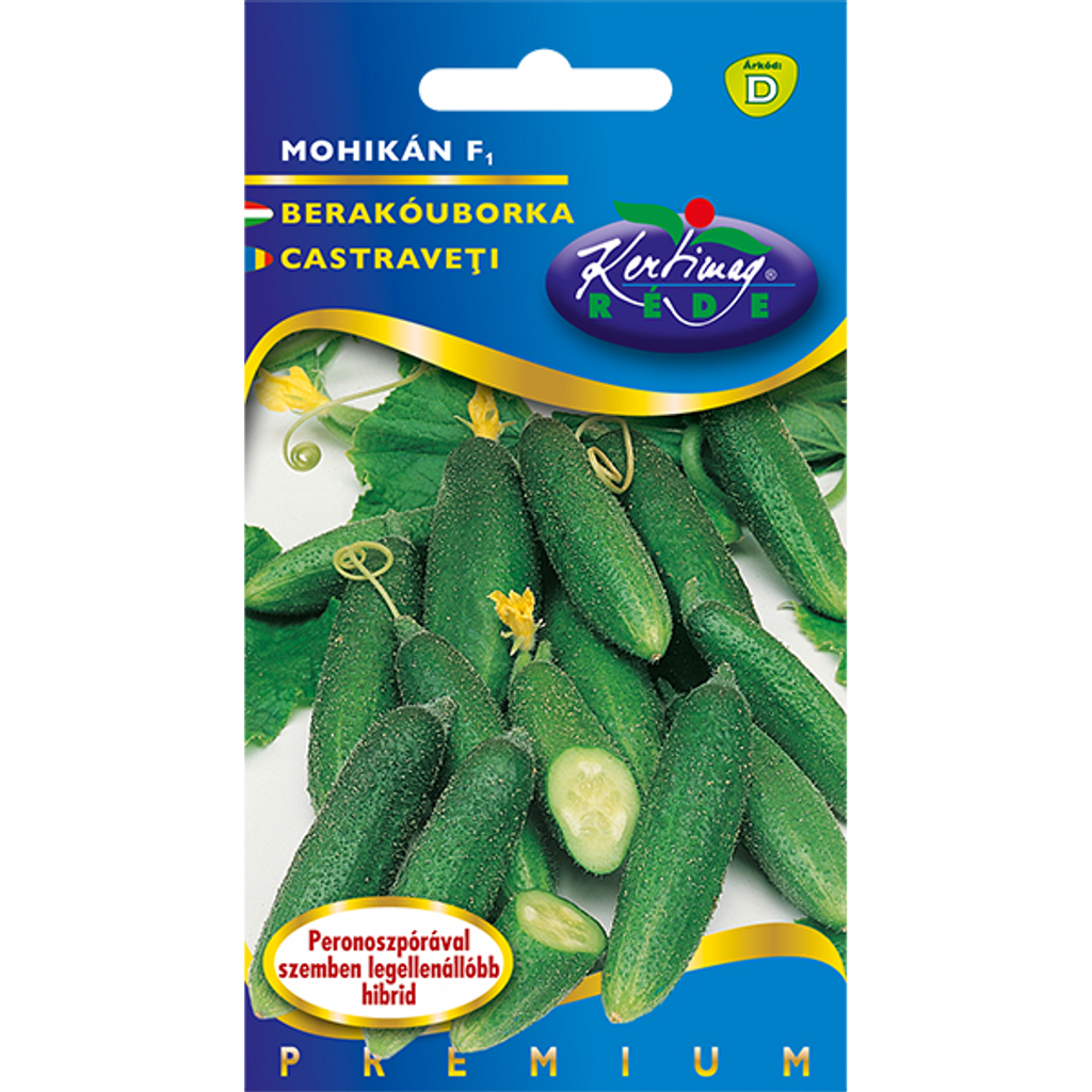 Gurka Mohikan F1 är en medeltidig hybrid som imponerar med sin jämna mognadsperiod och motståndskraft mot sjukdomar. Den utvecklar främst honblommor, vilket ger en stabil och hög avkastning. Frukterna är slanka, ljusgröna och helt fria från bitterhet – perfekta för inläggning i små storlekar.