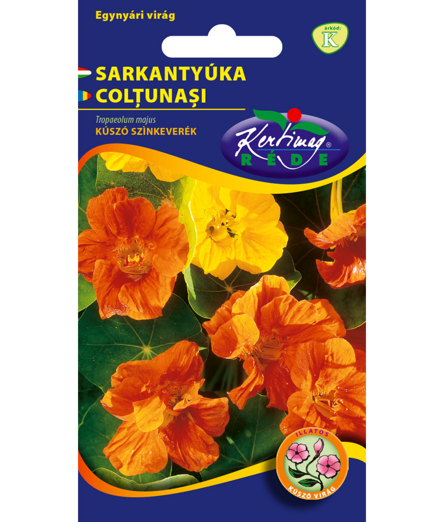 Klätterkrasse Färgmix (Tropaeolum majus) är en rikblommande ettårig sommarblomma med klättrande växtsätt och intensiva färger. Den är mångsidig i användning och passar utmärkt som kantväxt, i balkonglådor, urnor eller ledd längs spaljé och räcke.