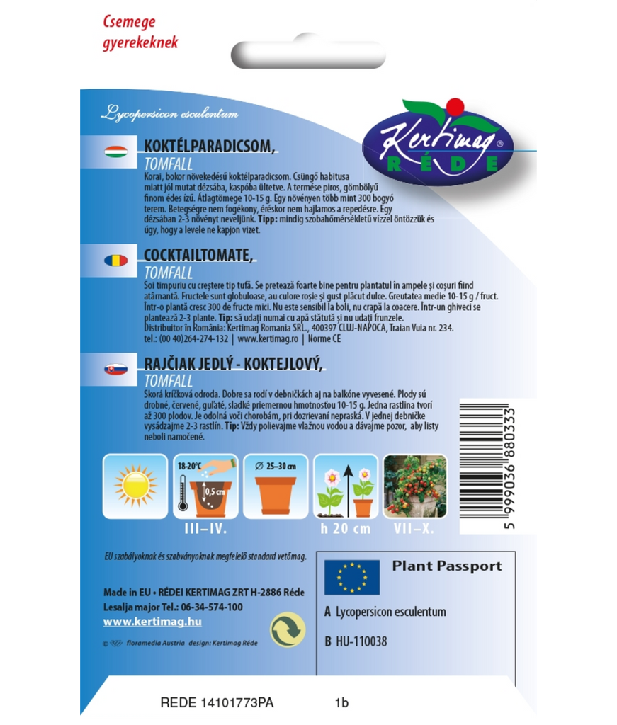 - Typ: Körsbärstomat / cocktailtomat (Solanum lycopersicum L.)