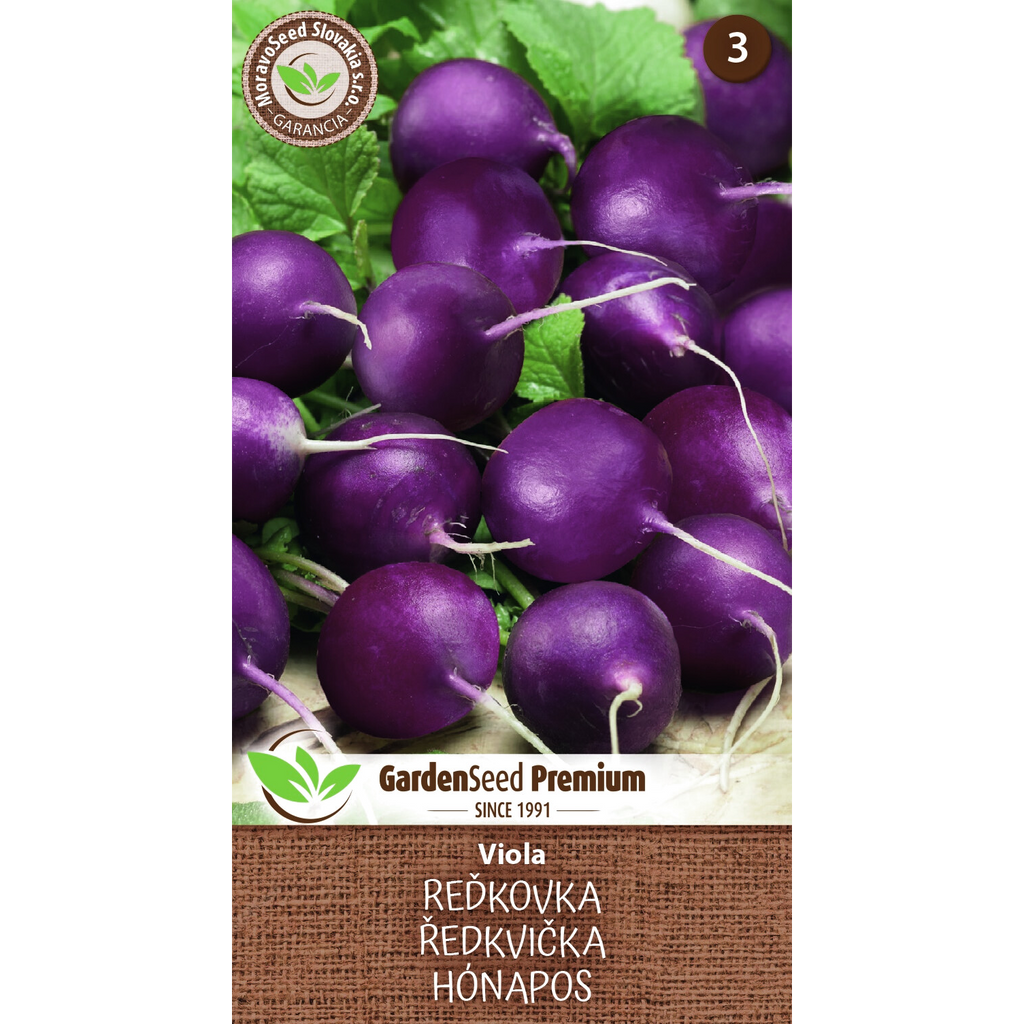 Rädisa Viola (Raphanus sativus) är en vacker och tålig sort med glänsande lila skal och krispigt vitt inre. Den är perfekt för odling året runt, även under sommaren, tack vare sin motståndskraft mot tidig blomning. Rädisa Viola mognar på 35–38 dagar och är utmärkt både för sallader och direktkonsumtion, vilket gör den till ett mångsidigt och snabbväxande val för din trädgård.