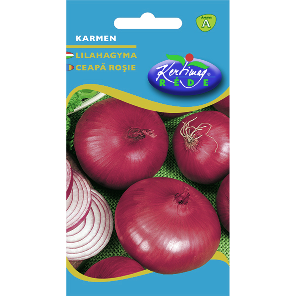 Röd lök Karmen (Allium cepa L.) är en högavkastande sort med plattrunda lökar och en intensiv karmosinröd skalton. Det smakrika, vita köttet gör den till ett utmärkt val för sallader och råkost. Dess goda lagringsegenskaper gör den idealisk för både hushålls- och storskalig odling.