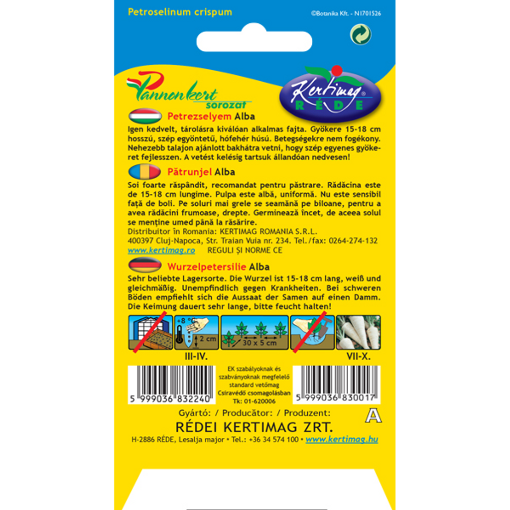 Rotpersilja Alba (Petroselinum crispum) är en omtyckt och tålig sort som lämpar sig utmärkt för lagring. Rötterna är 15–18 cm långa, jämna och har ett snövitt kött, vilket ger en fin och delikat smak. Denna rotpersilja är resistent mot sjukdomar och passar särskilt bra för odling i tyngre jordar, gärna på upphöjda bäddar för att säkerställa raka och fina rötter.
