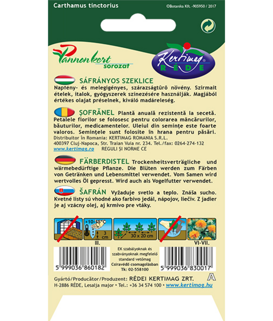 - Typ: Ettårig nyttoväxt (Carthamus tinctorius)