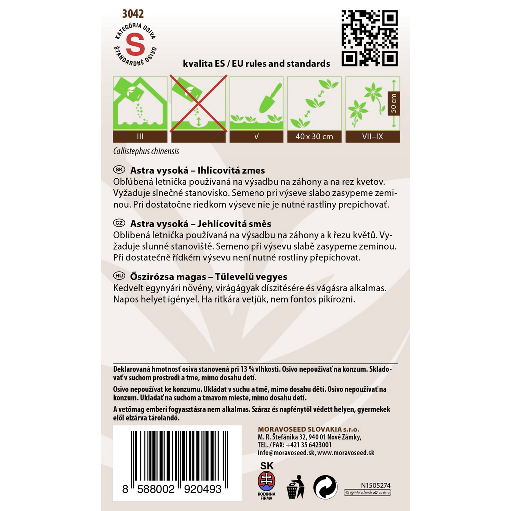 - Egenskaper: Ettårig, nålblommig, lättodlad