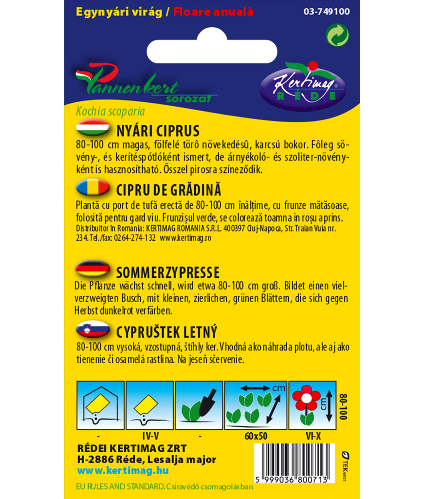 Sommarcypress (Kochia scoparia) är en snabbväxande ettårig prydnadsväxt med upprätt, smal och välformad växtform. Plantan når en höjd på cirka 80–100 cm och bildar en karaktäristisk, karlsliknande buske som ger struktur åt trädgården.