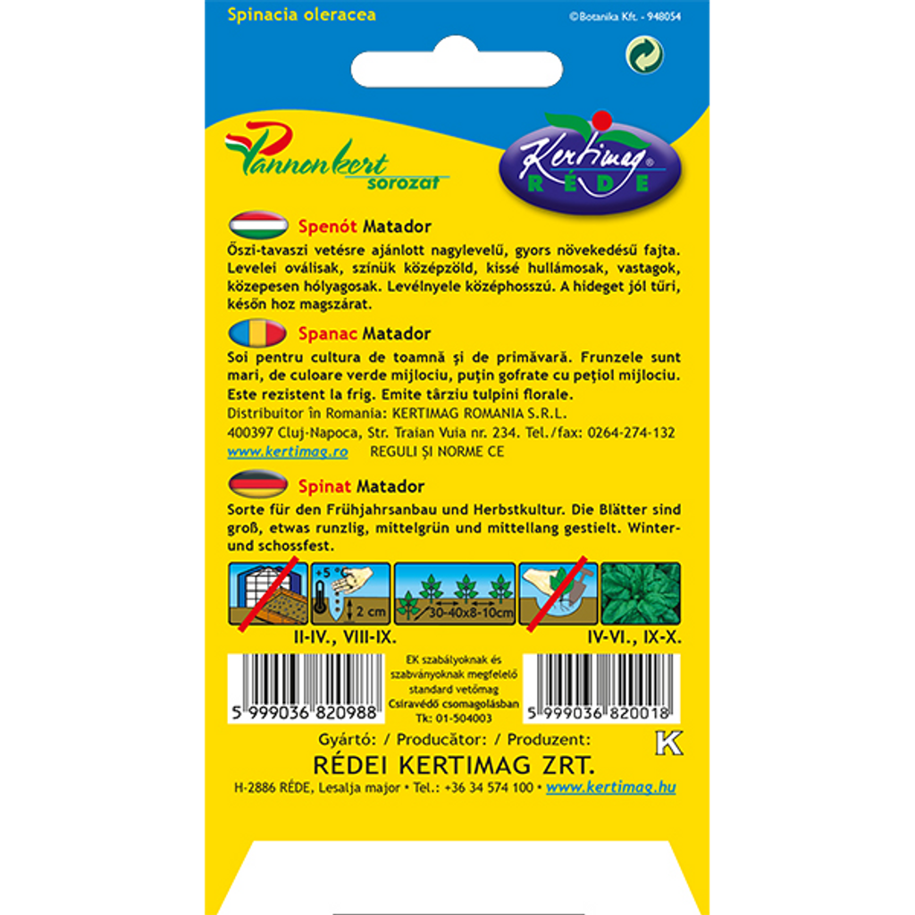 Spenat Matador (Spinacia oleracea L.) är en snabbväxande spenatsort som kännetecknas av sina stora, ovala och medelhårt bubbliga blad. Denna köldtåliga sort passar perfekt för både vår- och höstsådd, och dess tjocka, köttiga blad gör den utmärkt för både färsk konsumtion och frysning. Spenaten trivs även bra som mellanväxt i trädgårdar, men det är viktigt att inte plantera den nära rödbetor eller mangold, då de delar gemensamma sjukdomar.