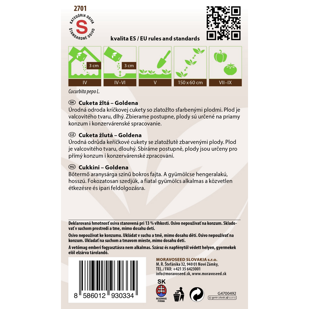 Squash Goldena är en högavkastande zucchinisort som ger vackra, gyllengula och cylinderformade frukter. Plantan växer kompakt i buskform och passar lika bra i odlingslådor som på friland. Frukterna skördas successivt, vilket ger en lång och jämn skördeperiod.