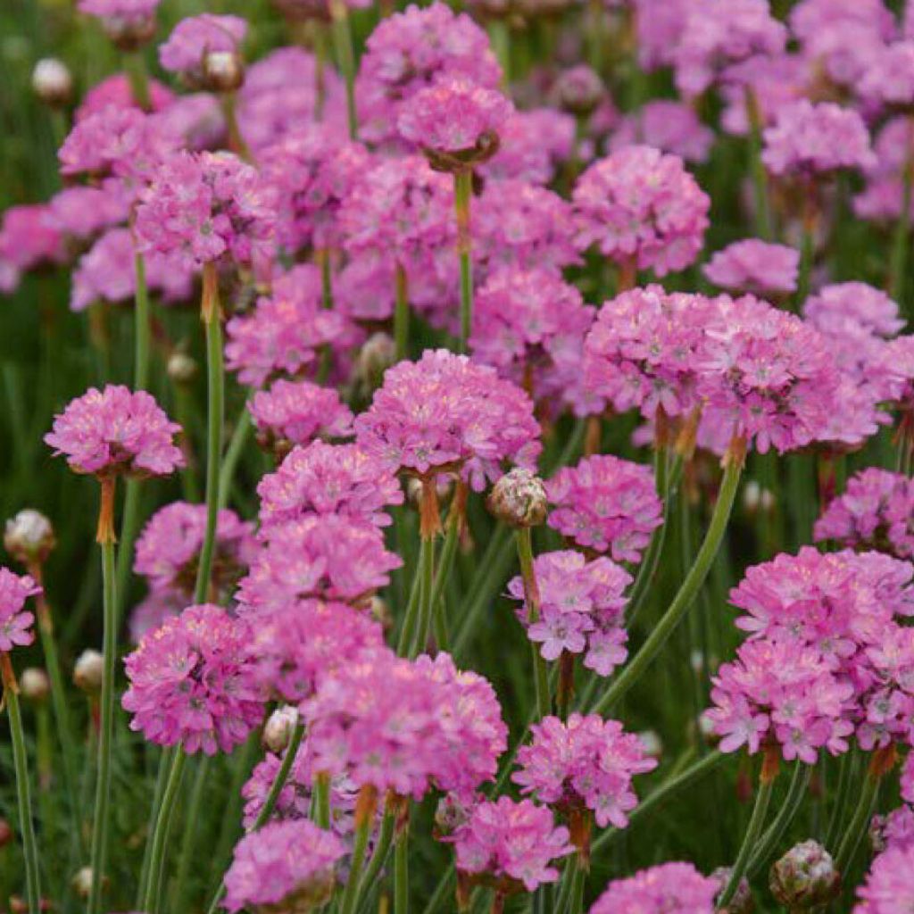 Trädgårdstrift Statice Mix (Armeria maritima) är en tålig flerårig blomma som trivs bäst i soliga lägen och torrare jord. Den är idealisk för att skapa vackra inslag i stenpartier och kan även odlas i krukor. Blommorna, som är små och dekorativa, bildar blombollar som pryder trädgården från våren och kan blomma om på hösten för en lång blomningssäsong.